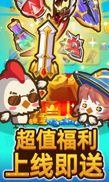 --采用Q版卡通的画风打造,呆萌可爱的小人角色塑造,轻松娱乐的游戏挂机放置玩法,玩家可以在这里体验到轻松合成的乐趣