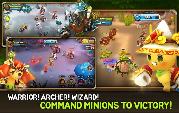 在攻防战获得胜利吧!从战士、魔法师、弓箭手中选一个英雄立斐,召唤从盟友小兵到超级小兵为止的小兵守护避难所。