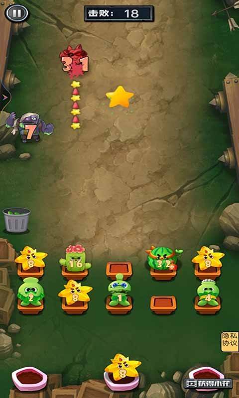 僵尸被击败后会掉落一些有用的东西,尽量多的收集他们。大的僵尸需要更多的植物齐心合力才能被打败。