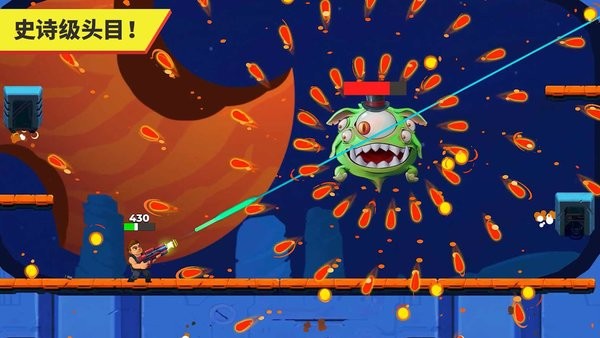 奋勇闯关,迎面击杀或是背面进攻外星怪兽,你自己来选。最终你还是会战败,很艰难,很沮丧?但是!你会发现大量战利品,从而获得更巨大、威力更强的武器,摧毁一切阻挡你前进的敌人!最后,空中纷飞的子弹密集到让人难以呼吸。