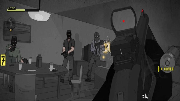 1、采用漫画手绘风格塑造了反恐精英和恐怖分子的人物形象,包括场景也是打造简易有趣。