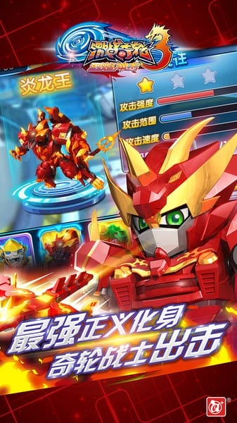 官方正版授权,全新机甲新游《激战奇轮3烈焰冲击》激情来袭!游戏画面卡通Q萌,玩法丰富有趣,技能打击感十足。让我们跟随着烈焰、蓝龙、飞鹰等奇轮战士们一起保卫奇轮星,一起对抗黑暗势力,驱逐邪恶吧!