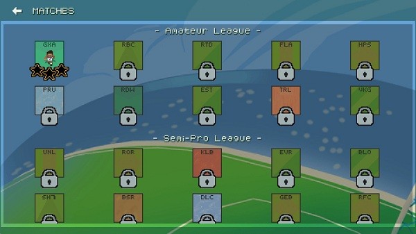 游戏有多种模式,比如世界杯模式、故事模式和多人对战模式,关卡难度逐级递增,挑战性十足。同时,游戏还加入了丰富的修饰符系统,让比赛变得更加有趣。你可以选择各种独特的场景效果,比如更大的球门或者流星雨,让比赛更具创意。