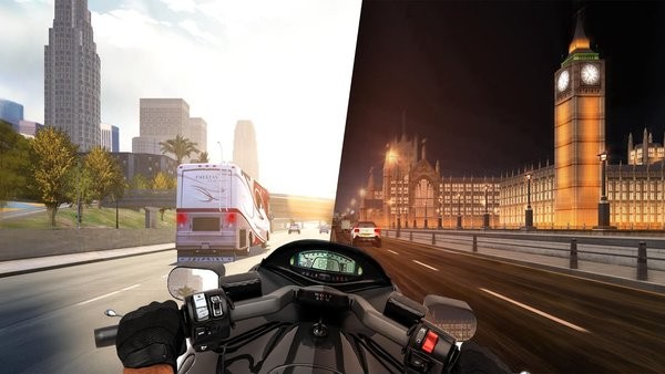 最让我喜欢的是游戏的画面,特别是晚上开的时候,灯光闪闪的,感觉像在看赛车电影一样。而且游戏里还能改装摩托车,换轮毂、喷漆什么的,真是玩不够!不过有时候车子会漂移或者失控,得注意别撞到护栏或者别的车,技术好的话就能赢比赛。