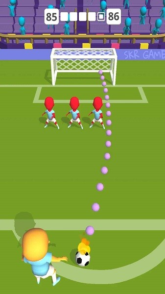 -- 阻挡在球门前面的是各种稀奇古怪的人墙阵型,想要越过它们就需要你选择好一个射门角度,再使出恰当的力量,就能踢出漂亮的一记射门;
