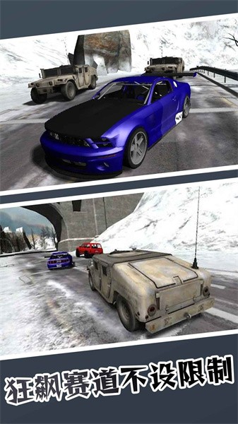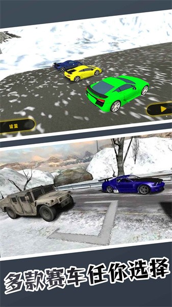 1、充满白雪与寒冰的地形世界,驾驶不同的赛车展开激情极速;