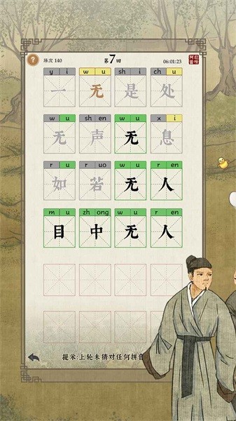 最让我喜欢的是游戏里的提示系统,虽然老夫出的题目有点难,但有了提示还是能慢慢想出来。每次猜对成语的时候,那种“八斗之才”的称号听起来特别酷!而且还能通过签到和分享获得小奖励,感觉学习成语也变得更有动力了。