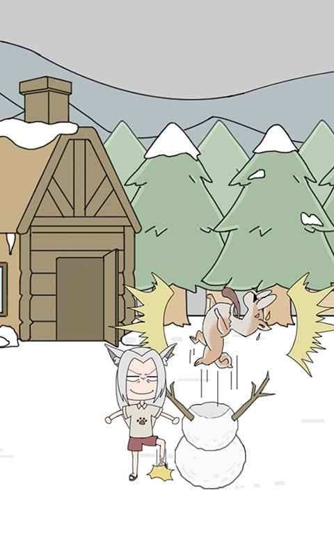 第四关:这关首先要眼疾手快的获取山上正在跑动的雪球,然后在第一场景中获取房子顶上烟墩旁边的雪球以及屋檐下的萝卜和门旁边两侧的树枝,至此去往第二场景获取第三个在左侧树顶的雪球,将获取的全部道具组合放置在场景二中虚线圆内即可;