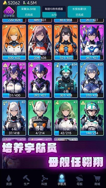 3、放置时还可以享受星际探索和养成的乐趣,它将传统采矿与太空科幻结合起来,赋予采矿新思路。