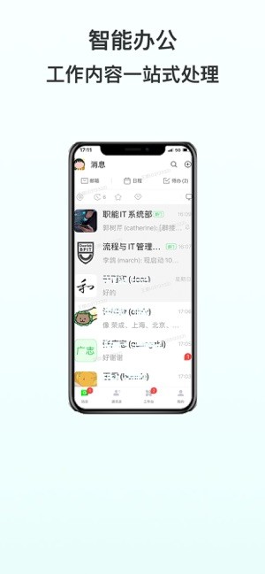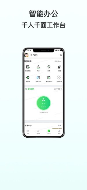 提供考勤、签到、审批、日志、公告、请假、报销、出差等OA功能,支持企业自定义应用接入,全面实现智慧移动办公。