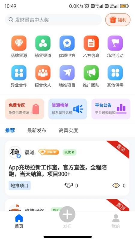 这个应用叫一手资源网,听起来是个挺实用的平台。主要是帮人们找各种商业资源和信息,比如货源、渠道、项目合作什么的。你可以在这里找合伙人推项目,还能免费发布资源信息。我觉得挺方便的,特别是有免费专区和榜单推荐,应该能解决不少人的需求。