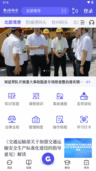 教培强安app是一款专门为港口码头工作人员提供安全教育和培训的应用程序。它旨在提高港口码头人员的安全意识和技能,从而减少安全事故的发生。还提供了法律法规等内容,帮助员工了解和遵守相关法律法规,保证安全作业的合规性。