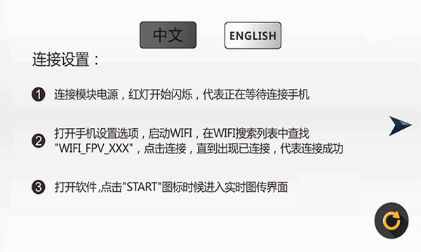 1、打开手机设置选项,启动wifi,在wifi搜索列表中查找“wiflfpvxxx”,点击连接,直到出现已连接,代表连接成功;