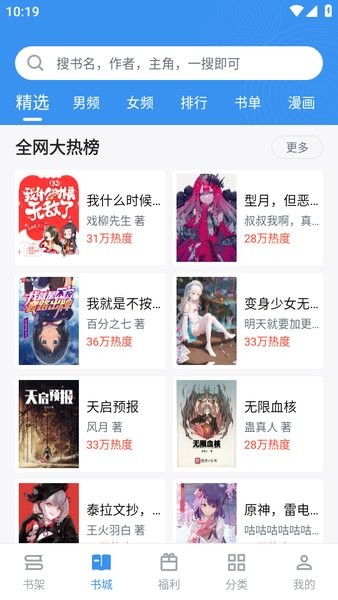 排行榜,支持各大小说平台的排行展示;