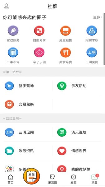 三明芭乐网app是专为三明市打造的本地生活论坛,许多的本地信息都可以让用户在软件之中进行交流,用户可以在软件之中掌握更多的本地信息和同城的服务,让用户的生活更加精彩。