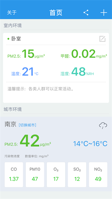 3.随时通过软件来掌握目前自己所处环境的空气质量