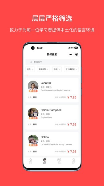 我们甄选全球专业教师;因材施教的采取个性化教学方法培养学员母语思维;VIP课程体系,助力学员练就地道口语!