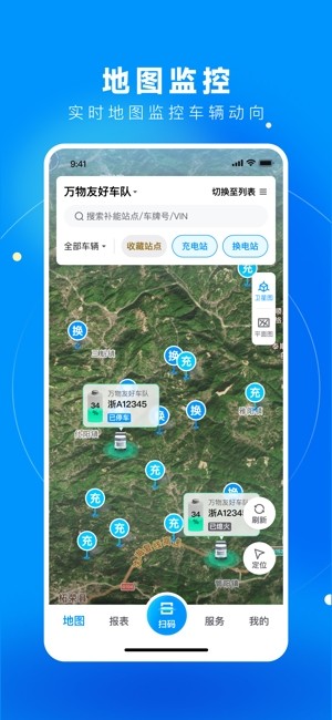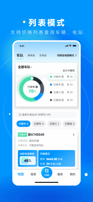 车辆位置监控、换电站监控、车辆行驶轨迹监控、车辆实时状态监控等服务,为您提供无微不至的车辆监管服务出,为用户创造更高效的车队管理日常。