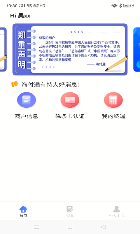 海付通POS,一款传统POS商户收款工具,只需一个智能手机即可实现商户的收款和管理,我们致力于打造广大持卡人及商户安全、便捷、高效的支付产品。