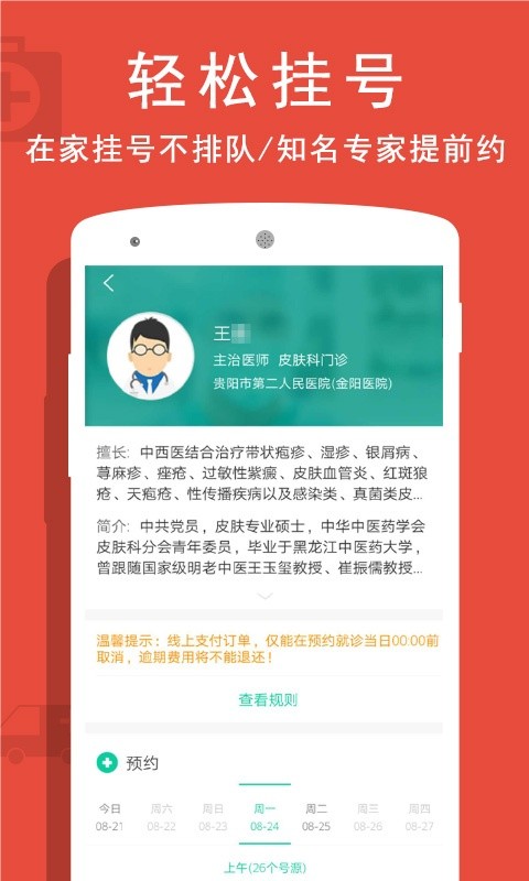 4、可以帮助用户提前预约专家挂号,名院名医随意挑选,不再担心挂不到专家号了;