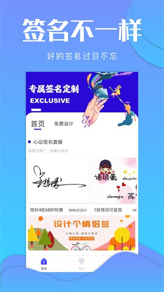 签名不好看?签名没特色?签名没个性?专属签名定制,一键轻松定制您的专属签名设计。 一笔签名、连笔签名、商务签名、行楷签名等艺术签名签名应有尽有,众多艺术设计大师在线为您量身定制的个性手写姓名签名档,让您受益终生! 签名、签名设计,设计签名,艺术签名、一笔签名、艺术签名设计,高端签名、潇洒签名、总裁签名、霸气签名、明星签名、创意签名、书法签名、英文签名、造型签名、情侣签名、手工签名,个性签名、公务签名、商务签名、定制签名、原创签名、名家签名、大师签名、视频签名、老板签名、签名APP、学生签名、签名……尽在本款APP