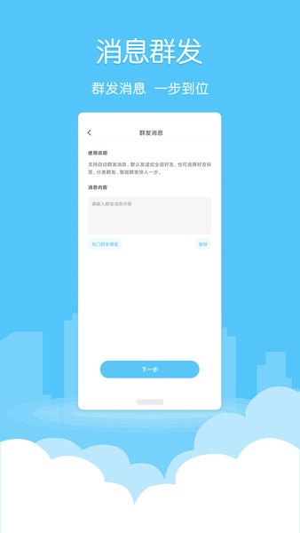 群发群消息、群发图片、群发小程序与公众号、亲密群发(可加入好友姓名)