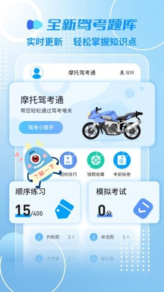 摩托车驾考一点通app是为备考摩托机动车的学员提供驾考学习的应用软件,拥有丰富的题库练习,带来大量驾考题库、图标技巧、错题收藏、考前秘卷内容,帮助大家学习更多更全面的知识,不断加强训练,巩固新知,顺利通过考试!