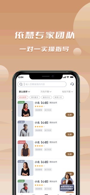 -- 提供了详细的咨询师介绍,帮助用户选择合适的咨询师开始交流,并且无需预约,直接进入沟通阶段;