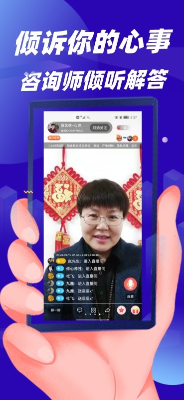 咨询师直播间答疑、礼物互动、连麦私密咨询、私信...更多精彩等您发现;