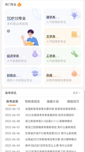 金鲤志愿服务平台是为高考学子打造的高考志愿填报软件,最新高考资讯及时推送,热门专业一目了然,涵盖各类院校以及专业库,提供自我测评、投档线、招生计划、一分一段、志愿课堂等功能服务,帮助筛选,智能填报合适的志愿!