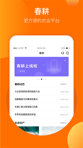 春耕APP是中农融信为农业生产者打造的综合性服务平台,集合地域优质资源,引入农业服务商,提供土地托管、农机服务、飞防服务、农技服务、农资商城、供求市场、农业保险等多样化服务,结合农业生产经营的情况,推荐种植方案、配套的服务和资源,让优质的农业服务触手可得。