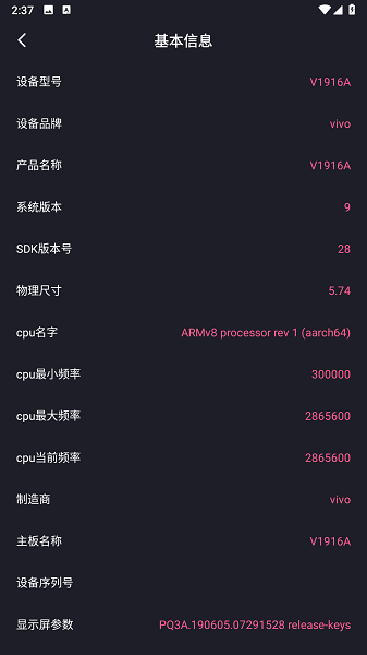 2、提供了详细的设备信息,可以清楚查看显示手机设备的参数信息