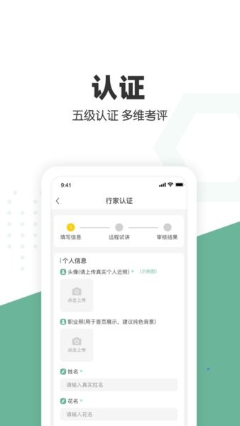 在入驻平台的时候需要经过行家认证,填写相应的个人信息。