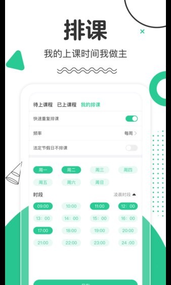 可利用app智能排课,不用手动排课,直接在app中操作就能完成;