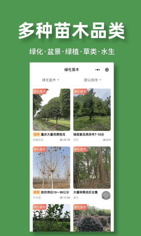 3、使用方法简单,非常好用的苗木交易服务平台,在这里汇集了绿化、盆景、绿植、草类和水生等类型的苗木品种。