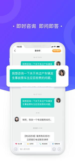 3、急速应答,平均用时6秒,律师即刻为你解决法律问题;