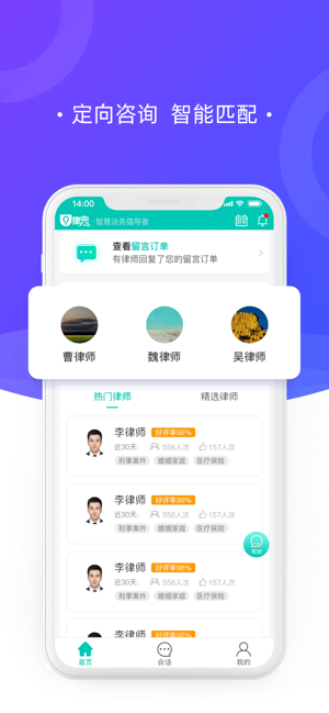 √律师服务打分制,可选择质量高、好评率高的律师提供服务