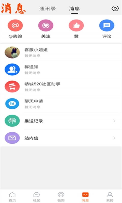 2、消息中心:向用户推荐最新的商家活动、社区新闻和小区公告等信息。