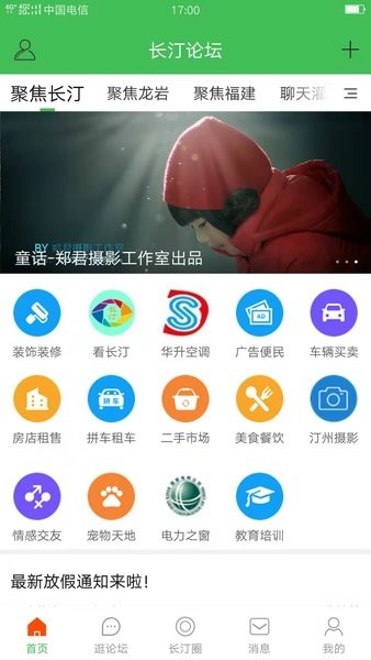 首页,聚焦长汀、网址导航、聊天灌水、最新发布、最新回复;
