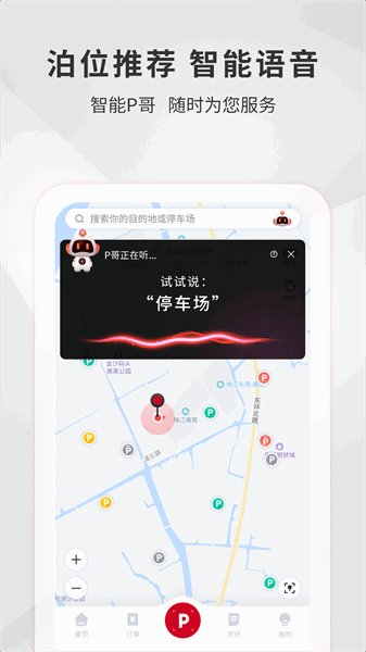 1、在首页中点击快速泊车,查看自己周边的各个泊位信息,快速前往停车