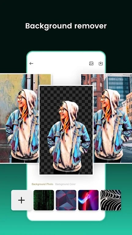 全自动神器,轻松消除背景,调出所需图片元素,生成透明背景图像,同时可以一键替换背景,超纯色背景材质可供替换,还支持从相册中选择图片作为背景。