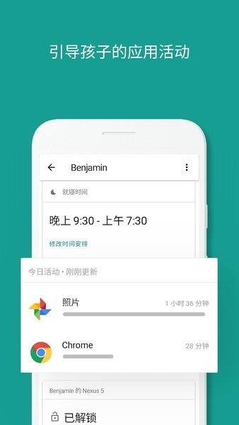 -- 查看孩子的应用活动 - 孩子在不同应用上花费的时长可能不同。通过活动报告了解孩子花在他们喜欢的应用上的时间,协助孩子养成良好的 Android 设备使用习惯。您可以查看系统生成的每日、每周或每月活动报告。