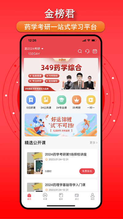 金榜君最新版是专门提供医药学考研的教育学习平台,带来丰富的药学资源内容,提供0元好课、2公开课、24专业课、25考研、一对一、名院校真题、必刷习题等资源进行学习,大量题库随你刷,错题、艘船、笔记巩固,不断强化提升,助力考研上岸!
