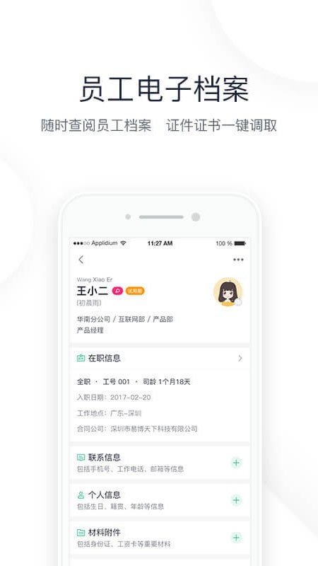-- 加密云存储,多终端同步,随时随地浏览员工档案资料