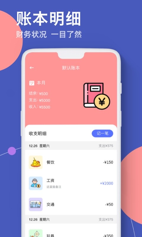 2、便捷记账,极简的记账操作流程,轻松就能完成记账操作。