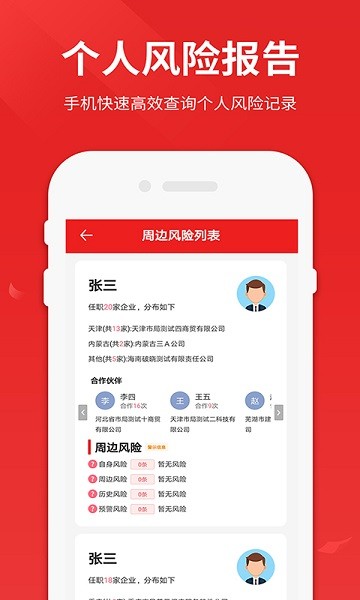老赖查询系统是一款提供全国失信人员查询的应用平台,支持个人征信查询、风险查询、逾期记录查询,信用等级一目了然,全面检测,快捷生成征信报告,多维度数据覆盖查看,帮助有效规避风险,操作简单,有需要的伙伴快来体验吧!