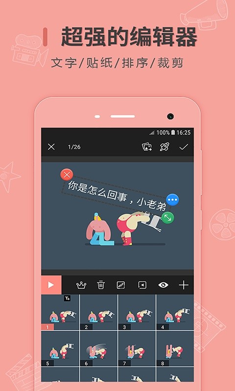 帧迹动图制作,功能强大的gif制作软件,可以帮助你快速完成搞笑动图制作,无论是想要表情包还是乐子片段都可以轻松实现,软件操作方法简单,支持图片与视频多种生成来源,生成的图片可一键进行分享发布,有需要的用户可以下载使用!
