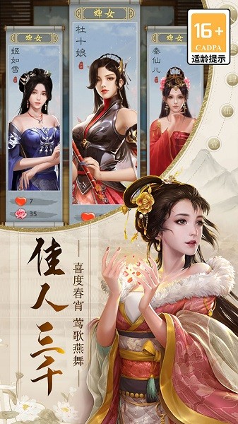 -- 有趣的后宫玩法,各种类型的美人等你过门,可以进行情感互动。