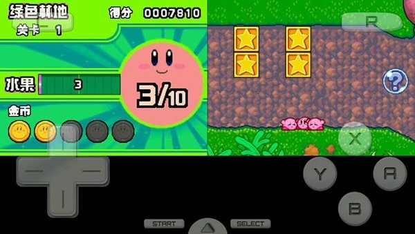 卡比状态 注:比状态金手指使用后, 又再把卡比状态金手指弄成不使用,按SELECT掉出来的星星就是你刚刚所弄的卡比状态金手指~