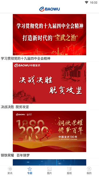 中国宝武APP中聚集了资讯、工作、学习、服务、快递、名录、消息中心等内容。作为公司的信息统一发布和获取渠道,面向集团全员定向定时定人推送,为您带来全方位移动互动体验。